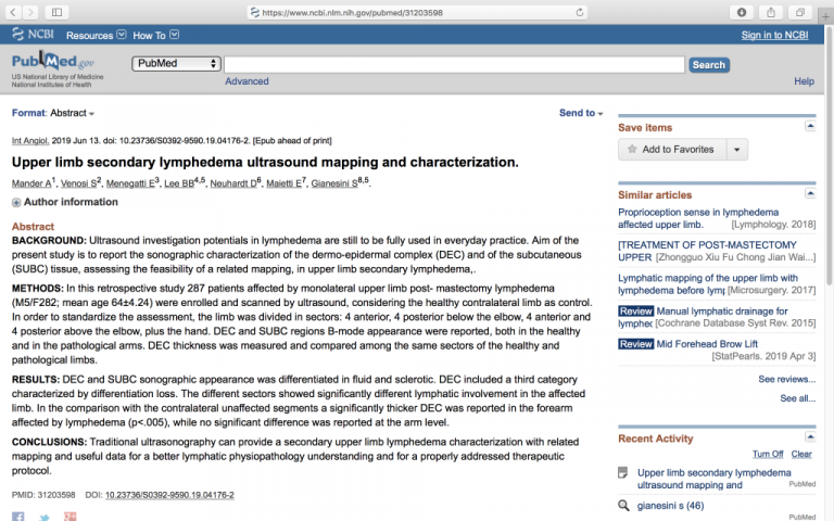 E’ stata pubblicata sulla rivista scientifica internazionale International Journal of Angiology una nuova proposta di classificazione ecografica del linfedema del braccio.