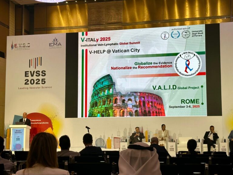 Il 14 febbraio 2025, il prof. Gianesini ha relazionato all’Emirates Vascular Surgery Society Annual Meeting in Abu Dhabi circa il progetto globale ed istituzionale da lui diretto circa i real world data nel trattamento delle vene varicose, del linfedema e del lipedema.