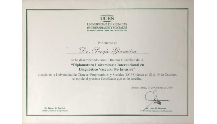 - Direttore generale del corso di diagnostica vascoalre non invasiva, UCES University