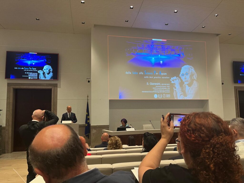 In occasione del Congresso Nazionale della Società Italiana di Flebo-Linfologia, Gianesini, in qualità di Presidente della Società Mondiale di Flebologia (International Union of Phlebology) è